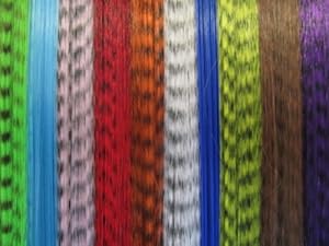 (20 extensions total) 10 colors above. Use: Flat and curling irons can be used with this item. Material: Synthetic Hair Extensions colored to look as Grizzly Feathers (NOT Feathers)
