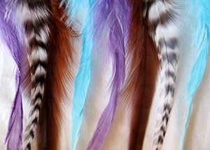 Once applied hair feathers will flow beautifully in your hair. Feather Hair Extensions can be washed, curled, straightened, and blown dry. The Night Life Feather extension comes with 1 grizzly feather, 1 purple feather, 1 teal feather, and 1 brown feather.